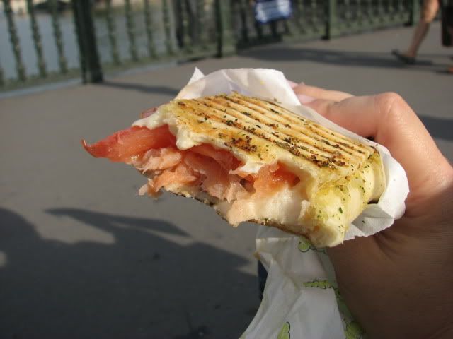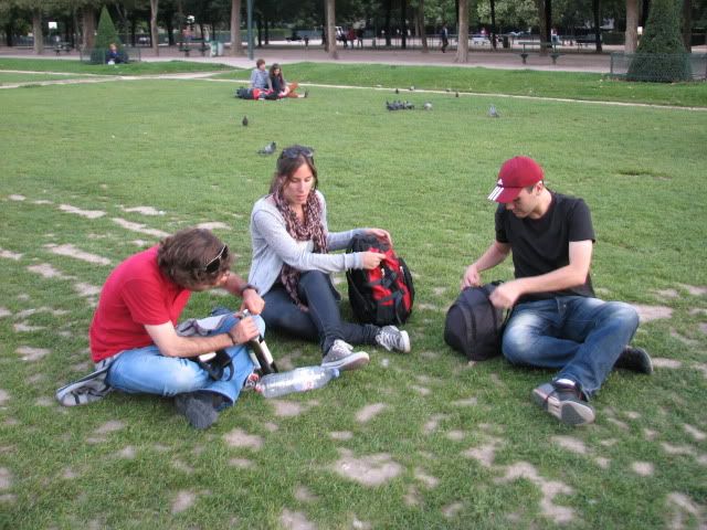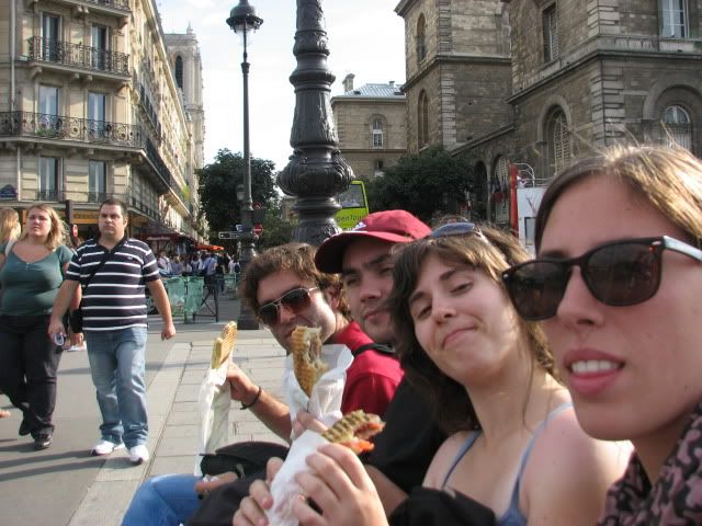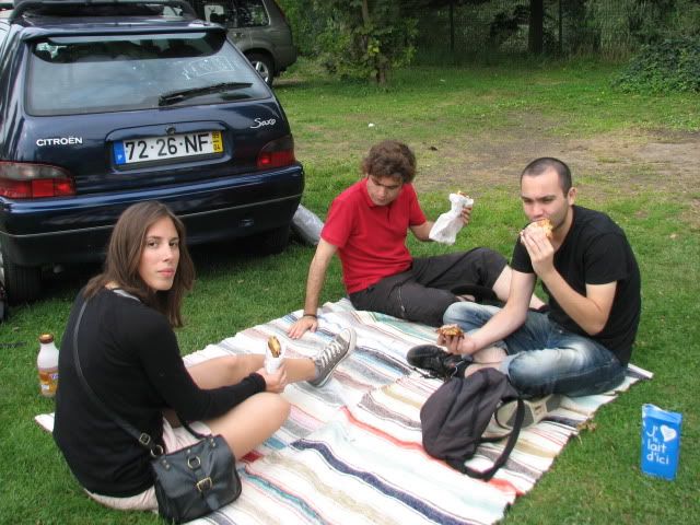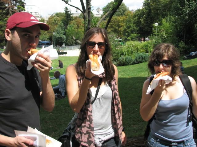 A fome já começava a apertar.. era chegada a hora de encher de novo as barrigas. Jardim abaixo descobrimos várias barraquinhas que vendiam toda uma panóplia de fast food, incluindo crepes, sandes, paninis e hot-dogs. O Tiago optou por um crepe, mas o resto da malta comeu cada um seu hot-dog, todos eles cobertos de ketchup e da mostarda mais activa que já tínhamos experimentado, que fazia jus à expressão "subir a mostarda ao nariz"!!