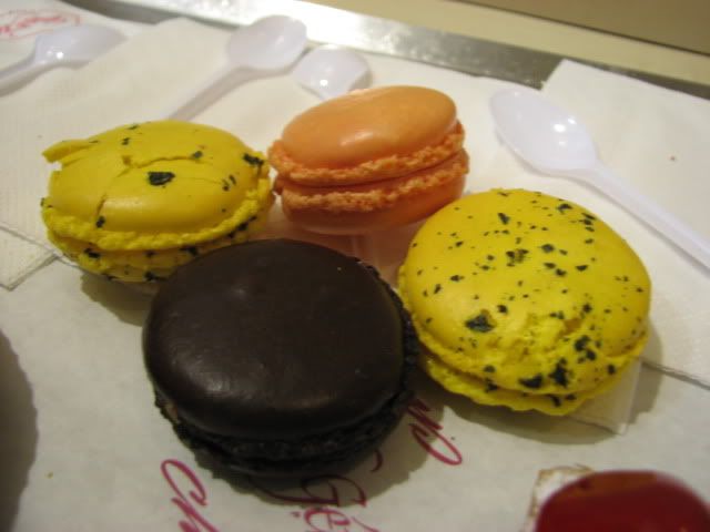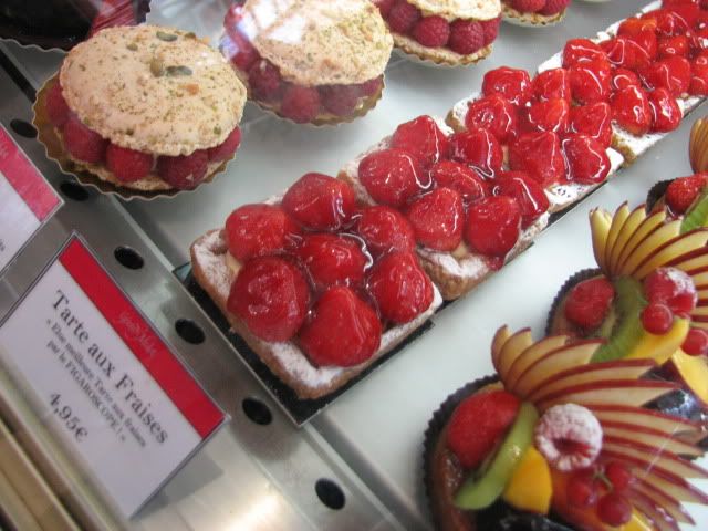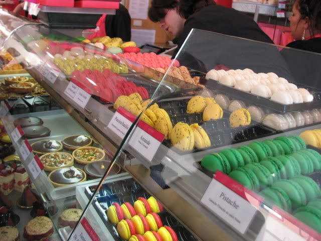 A próxima paragem foi na Patissier et Chocolatier Gérard Mulot, na Rue de Seine, um pedacinho de céu para os mais gulosos ou mesmo para aqueles que gostam de comer com os olhos. A variedade era imensa e o aspecto era fantástico...foi difícil escolher! Mas a vontade de provar era tanta que a bem ou a mal tivémos que nos decidir por duas variedades de tartes e um macaron para cada um: eu e a Rita arriscámos um de maracujá e basílico, o Tiago preferiu o de melão e o Luís escolheu, como sempre, chocolate.