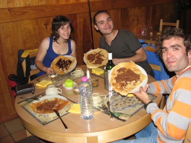 Ao menos a noite ia ser bem dormida, o colchão era confortável e tinhamos televisão e uma carrada de tomadas ali mesmo ao lado.. tantas regalias! :P entretanto estavamos todos esfaimados (sim, relembro que o dia foi passado a pão e água) pelo que fomos à procura de morfes. Na rua perguntámos a um par de francesas por refeições baratas (<10€/pessoa) ao que elas se fartaram de rir como que desejando boa sorte.. Mesmo assim lá nos recambiaram para a Pizza Hut. 2 pizzas médias e uma coca-cola de 1,5l por pouco mais que 17€ - afinal sempre era possível!
